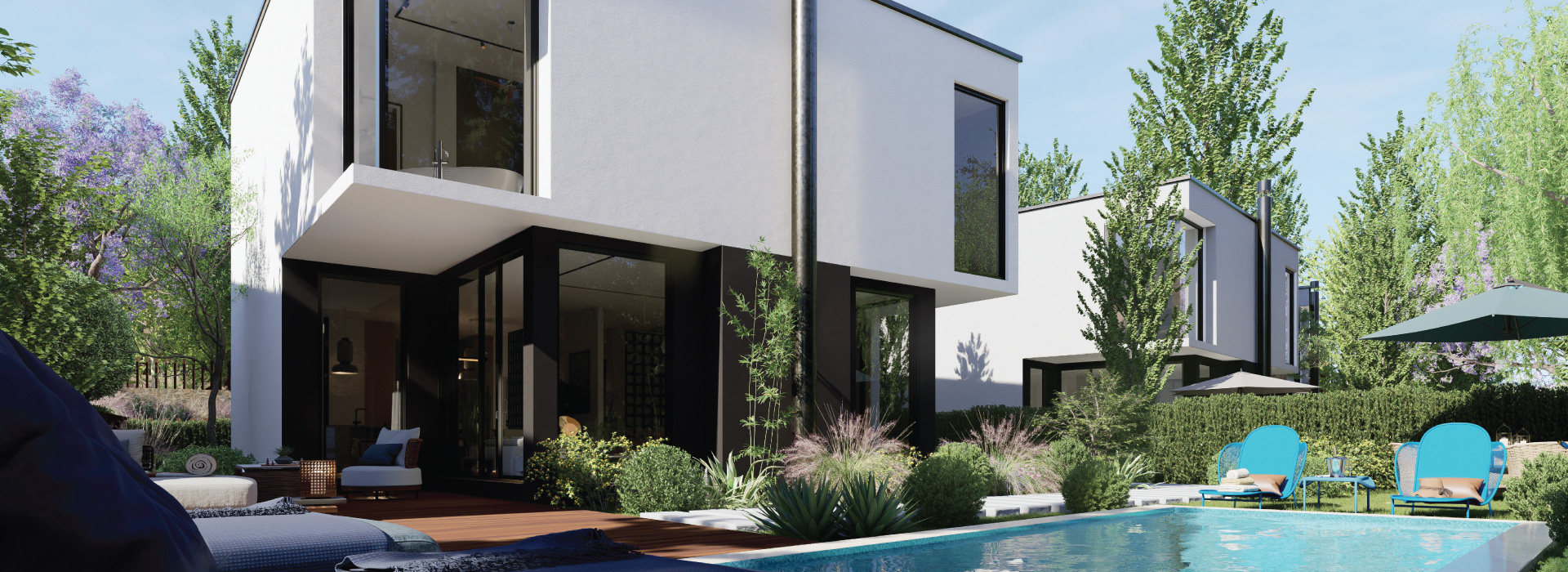 Koncepti arkitektonik karakterizohet në mënyrë gjeniale nga një formë kompakte, e cila krijon me mjeshtëri shprehje dinamike duke “ngrënë” herë pas here cepat e strukturës. Ky element dizajni i shton vilës elegancë. Për të përmirësuar lidhjen me panoramën e qytetit, hapësirat prej xhami integrohen me mjeshtëri, duke inkuadruar pamje mahnitëse nga brenda.